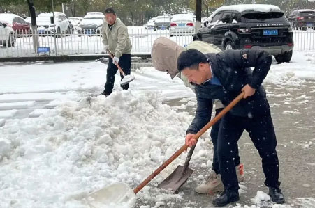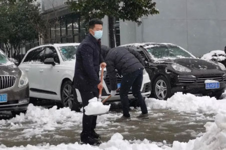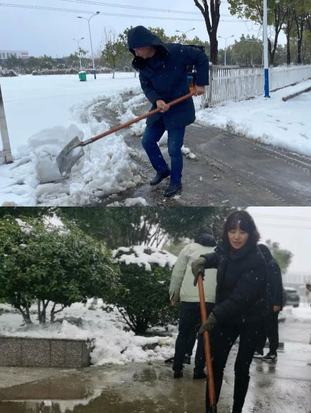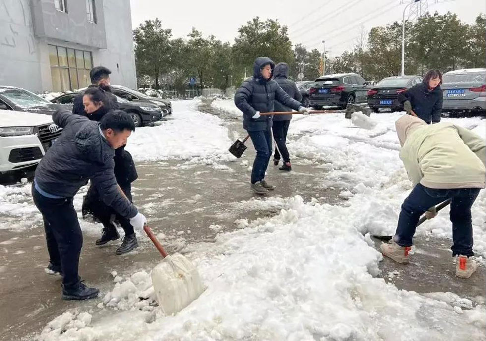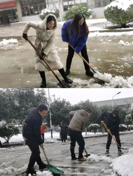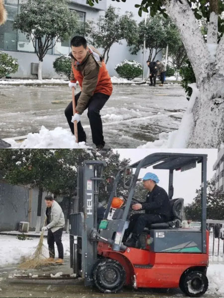 刚过完新年,大家的精神状态饱满,寒冷的天气丝毫没有影响大家高涨的热情,一幅幅忙碌的身影化作雪地里最温暖靓丽的风景线。不到一个小时,公司内各主干道、停车场和厂房出入口处的积雪都被扫除干净,人行通道全部铺上了防滑垫。